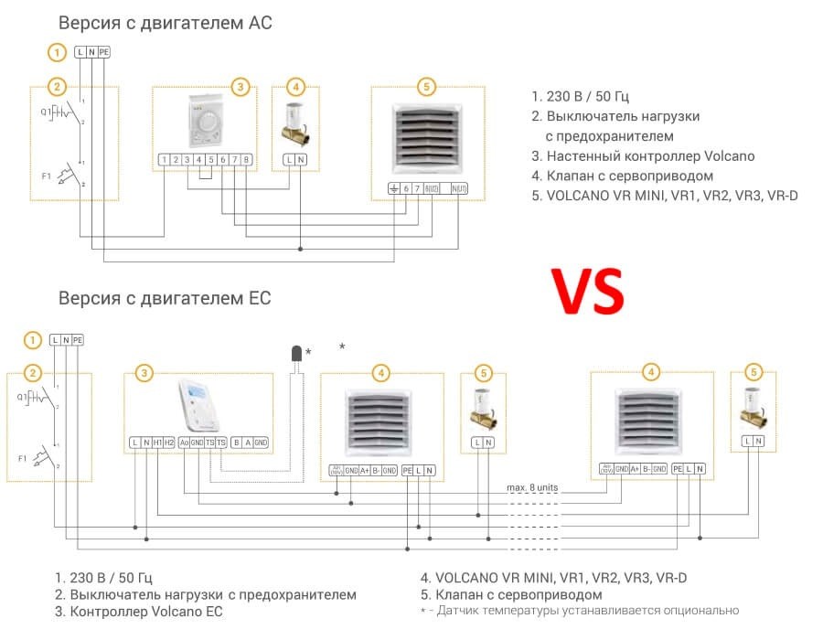 Ключевое отличие тепловентиляторов AC и EC заключается в типе двигателя.